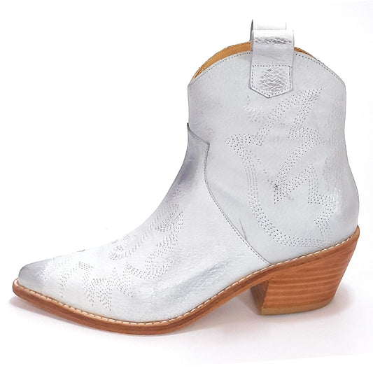 Botas Texanas Blancas patina Plata Mujer Cuero Cortas Bordadas Quica Laguna