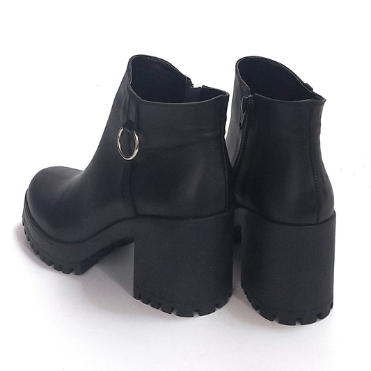 Bota Botineta Mujer Elegante Vestir Plataforma Cuero Negro Quica Garza
